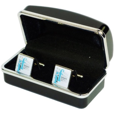 A pair of 20mm hard enamel cufflinks available in a variety of finishes. Supplied in poly bags as standard but other packaging is available. Prices on application.