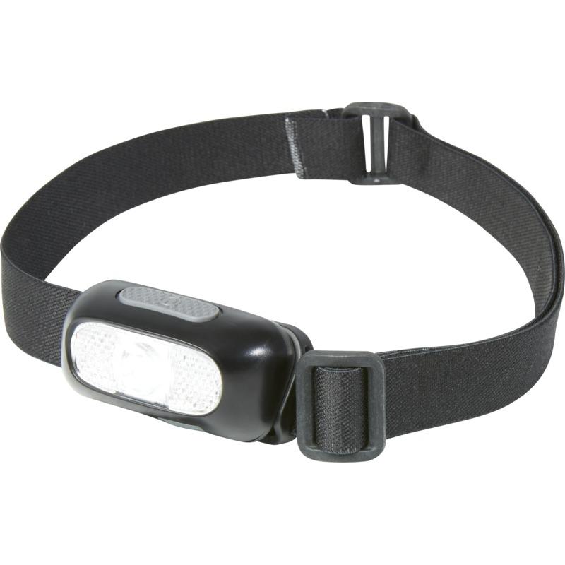 Never run out of batteries with this rechargeable high power IPX 3 rated headlight, ideal for when you need some light during outdoor activities. The comfortable polyester headband is adjustable and has an unstretched circumference of 60 cm. The headlight is lightweight (58 grams) and adjustable up to a 45 degrees angle. The 3W LED generates 90 lumen for a lighting time of 4.5 hours and has a beam distance of 100 meter. It also features 2 red LED lights with 3 modes (high/medium/low). The built-in lithium battery provides a capacity of 400mAh. Comes with an instruction manual and is packed in a recycled cardboard gift box (7 x 6.5 x 5 cm). ABS Plastic.