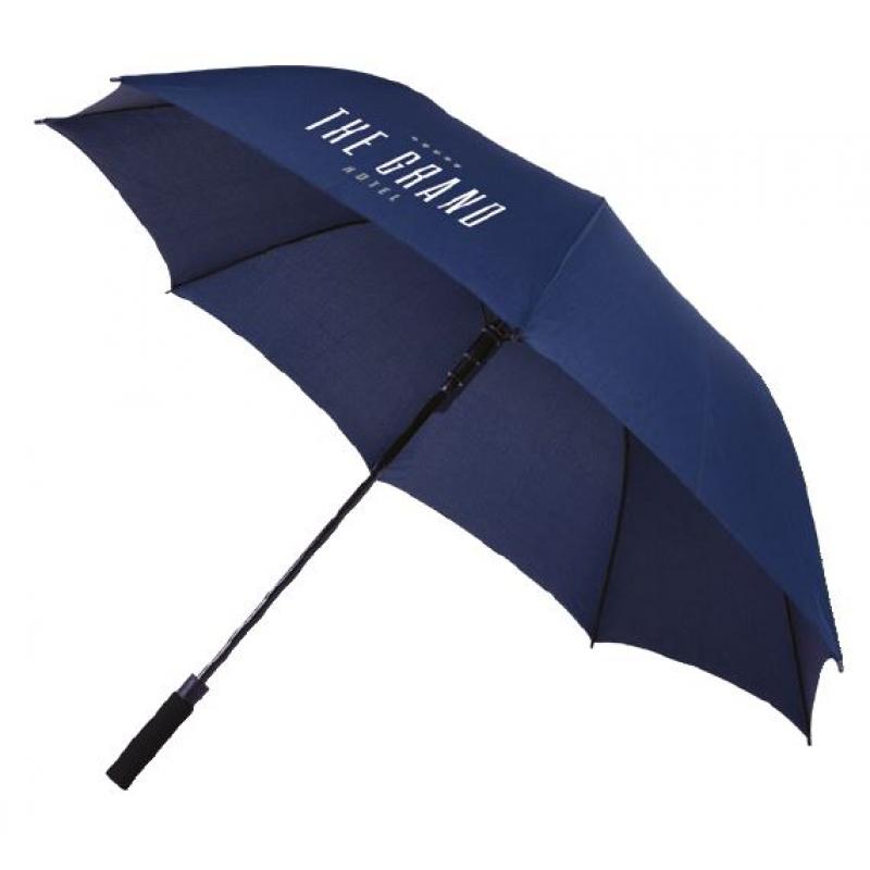 Grace 30'' windproof golf umbrella with EVA handle. Manually opening umbrella with a polyester canopy. It has a sturdy metal shaft and a high quality full fiberglass frame, offering maximum flexibility in windy conditions. Curved EVA handle, plastic tips and top. Available in a wide variety of contemporary colours and has a large decoration area on each of the panels. Polyester.